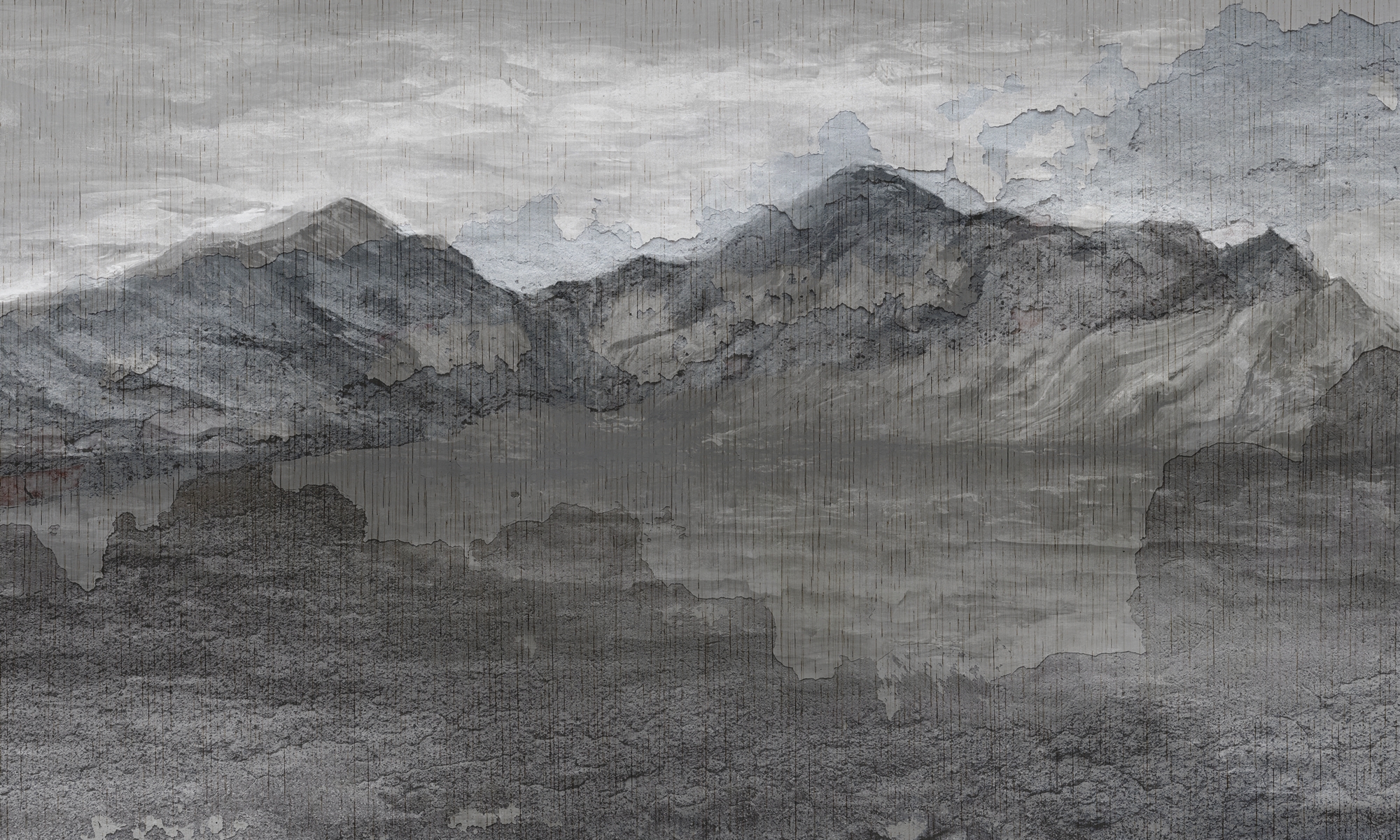 Tapeta ścienna inspirowana górskim pejzażem, utrzymana w chłodnych, grafitowo-szarych tonach. Subtelne przejścia barw i fakturalny efekt przypominający spękaną skałę tworzą wrażenie głębi i naturalnego reliefu. Idealna do wnętrz w stylu modern, industrial lub japandi – wprowadza spokój, surową elegancję i artystyczny charakter.