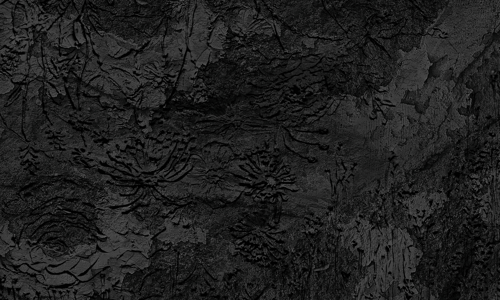 Ciemna, matowa powierzchnia o wyraźnej, rzeźbiarskiej strukturze. Wzór roślinny subtelnie wyłania się z tła, tworząc efekt głębi i tajemniczości.