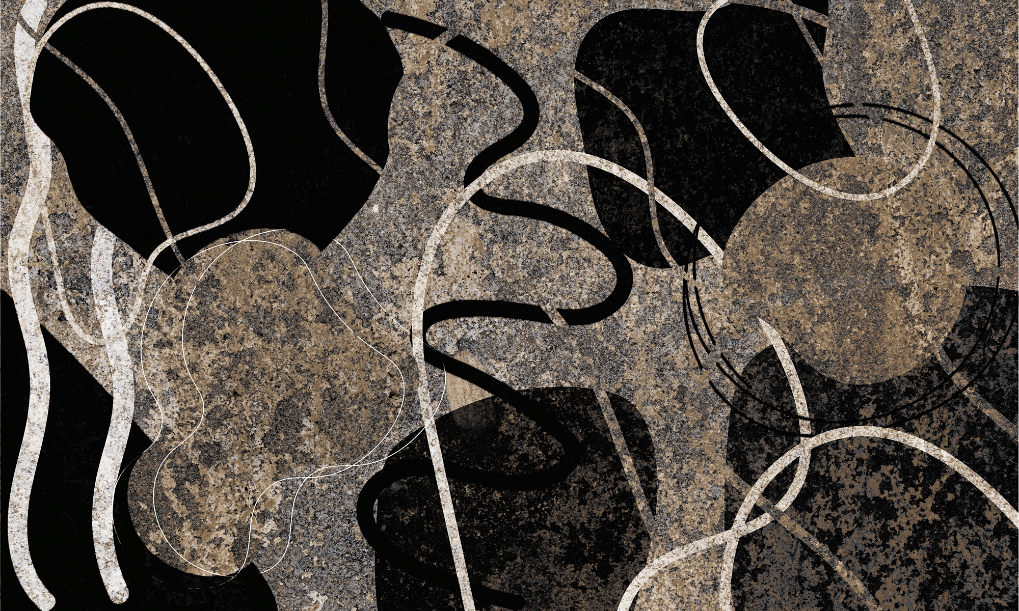 Ekspresyjny, graficzny wzór o industrialnym charakterze. Ciemna paleta barw i wyraźne linie nadają wnętrzu głębi i nowoczesnego rytmu.