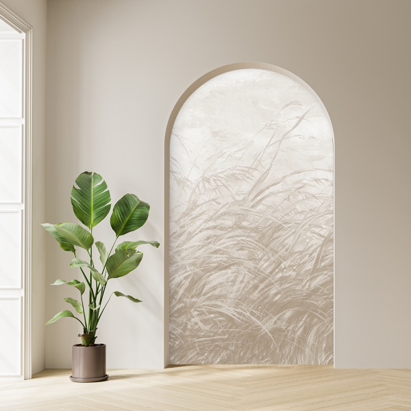 Łuki dostępne są w jednym standardowym rozmiarze: 130 × 250 cm. Drukujemy je na samoprzylepnym podkładzie o strukturze płótna, dzięki czemu montaż jest szybki i prosty – wystarczy odkleić folię zabezpieczającą i przykleić dekorację bezpośrednio na ścianę.
