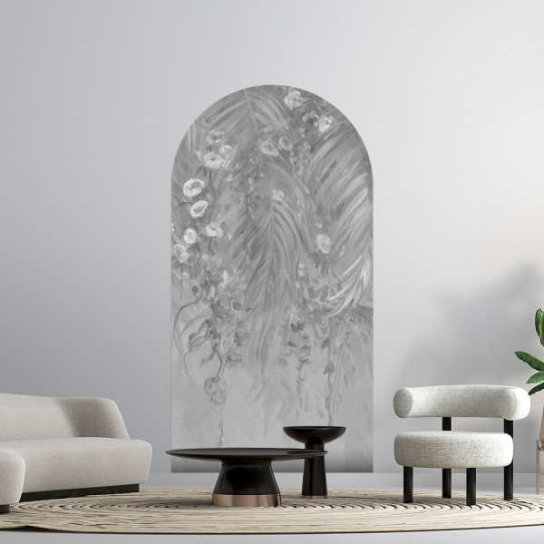 Łuki dostępne są w jednym standardowym rozmiarze: 130 × 250 cm. Drukujemy je na samoprzylepnym podkładzie o strukturze płótna, dzięki czemu montaż jest szybki i prosty – wystarczy odkleić folię zabezpieczającą i przykleić dekorację bezpośrednio na ścianę.