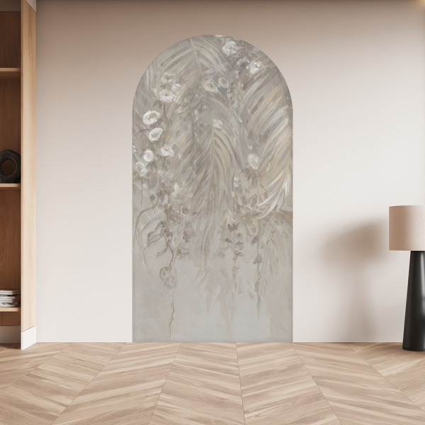 Łuki dostępne są w jednym standardowym rozmiarze: 130 × 250 cm. Drukujemy je na samoprzylepnym podkładzie o strukturze płótna, dzięki czemu montaż jest szybki i prosty – wystarczy odkleić folię zabezpieczającą i przykleić dekorację bezpośrednio na ścianę.