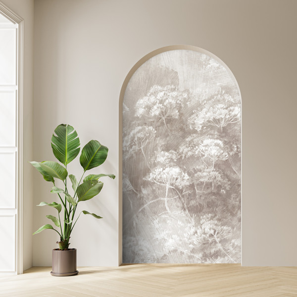 Łuki dostępne są w jednym standardowym rozmiarze: 130 × 250 cm. Drukujemy je na samoprzylepnym podkładzie o strukturze płótna, dzięki czemu montaż jest szybki i prosty – wystarczy odkleić folię zabezpieczającą i przykleić dekorację bezpośrednio na ścianę.