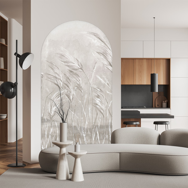 Łuki dostępne są w jednym standardowym rozmiarze: 130 × 250 cm. Drukujemy je na samoprzylepnym podkładzie o strukturze płótna, dzięki czemu montaż jest szybki i prosty – wystarczy odkleić folię zabezpieczającą i przykleić dekorację bezpośrednio na ścianę.