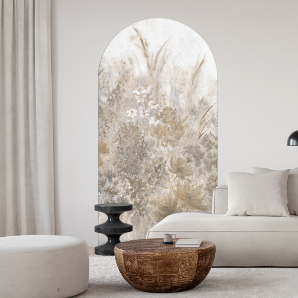 Łuki dostępne są w jednym standardowym rozmiarze: 130 × 250 cm. Drukujemy je na samoprzylepnym podkładzie o strukturze płótna, dzięki czemu montaż jest szybki i prosty – wystarczy odkleić folię zabezpieczającą i przykleić dekorację bezpośrednio na ścianę.