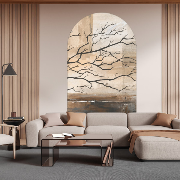 Łuki dostępne są w jednym standardowym rozmiarze: 130 × 250 cm. Drukujemy je na samoprzylepnym podkładzie o strukturze płótna, dzięki czemu montaż jest szybki i prosty – wystarczy odkleić folię zabezpieczającą i przykleić dekorację bezpośrednio na ścianę.