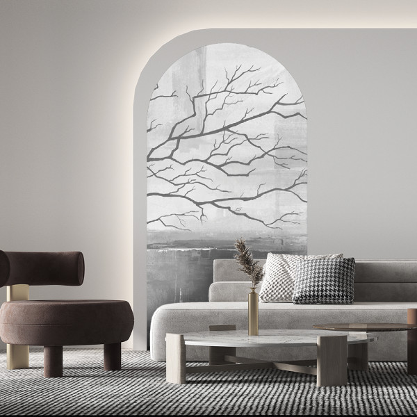 Na życzenie możemy przygotować łuk na innym podkładzie tapetowym z oferty Rauv. W takiej wersji dekoracja montowana jest przy użyciu kleju do tapet, co pozwala uzyskać efekt idealnie dopasowany do powierzchni ściany.