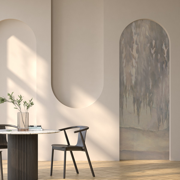 Na życzenie możemy przygotować łuk na innym podkładzie tapetowym z oferty Rauv. W takiej wersji dekoracja montowana jest przy użyciu kleju do tapet, co pozwala uzyskać efekt idealnie dopasowany do powierzchni ściany.