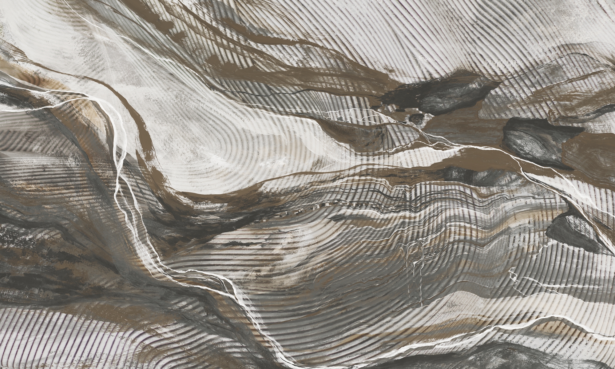 Dynamiczna tapeta inspirowana strukturą ziemi i ruchami natury. Ciepłe, piaskowe tony nadają wnętrzu głębię i organiczny, naturalny rytm.